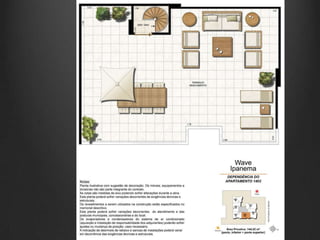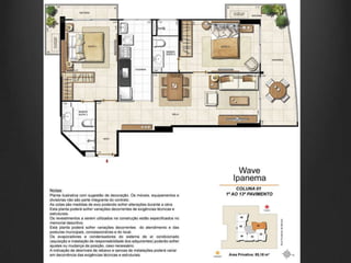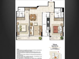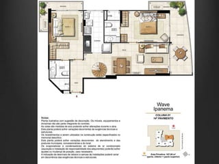 O projeto Wave Ipanema, da RJZ Cyrela, é uma nova empreitada no bairro de Ipanema, caracterizado por sofisticação e elegância. Com 13 andares e 84 unidades disponíveis, os apartamentos têm metragem de aproximadamente 73 a 85 m². Os interessados podem entrar em contato pelo e-mail vendas@rio4imoveis.com.br ou pelo telefone 21-32478192.