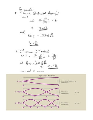 Wave motion transfers energy from one place to another. There are two main types of waves: transverse waves where particles oscillate perpendicular to the wave direction, and longitudinal waves where particles oscillate parallel to the wave direction. Key wave properties include amplitude, wavelength, frequency, and phase. Waves can undergo various interactions including reflection, refraction, diffraction, interference, and superposition. Interference of waves leads to constructive and destructive interference patterns. Standing waves occur due to interference of waves traveling in opposite directions.