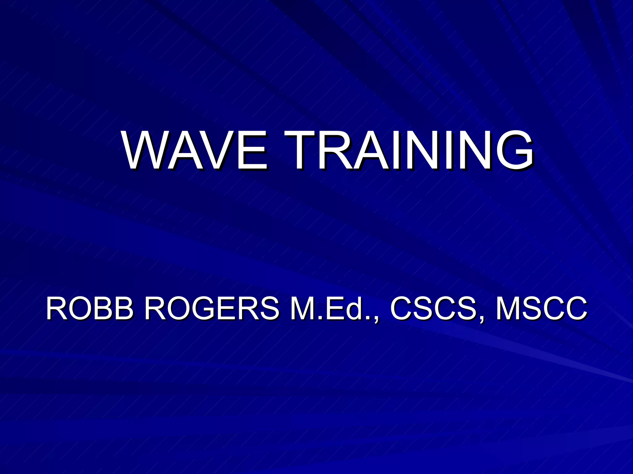 The document discusses wave training principles for maximizing athletic performance. Wave training involves periodically varying different training parameters like load, reps, sets, exercises and recovery times. It provides examples of wave training routines targeting hypertrophy, strength, power and speed through contrasting exercises within a single workout. The goal is to continually challenge the body with new stresses to drive further adaptations.