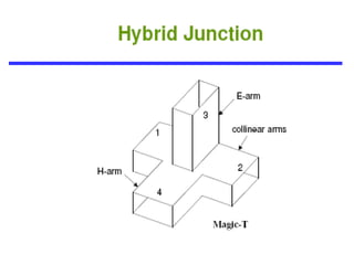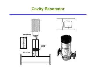 This document provides information about circular waveguides. It begins by defining a circular waveguide as a tubular circular conductor that supports TE or TM wave propagation modes. Cutoff wavelengths depend on the internal radius of the waveguide. Common modes for circular waveguides are labeled similarly to rectangular waveguides. The document also provides examples of calculating cutoff wavelengths and wavelengths in a guide for a given signal frequency and waveguide dimensions. It concludes by discussing microstrip and stripline transmission lines used at higher microwave frequencies when waveguides become impractical.