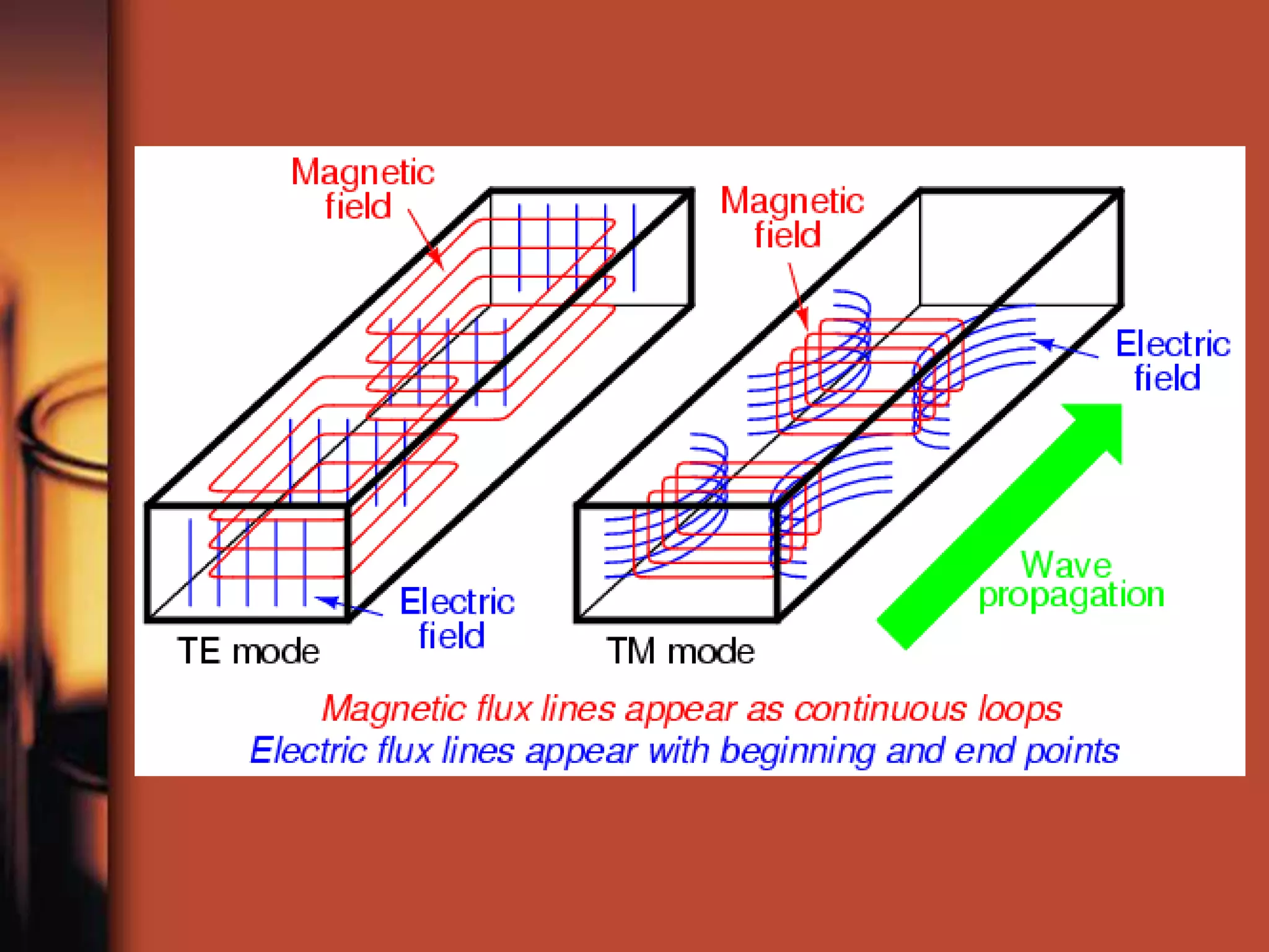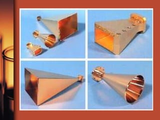 Rectangular waveguides are the most commonly used form and carry signals above a certain cutoff frequency. They propagate electromagnetic waves in different modes depending on whether the electric or magnetic vector is perpendicular to the propagation direction. For rectangular waveguides, the width determines the lower cutoff frequency and the TE10 mode is the lowest supported. Circular waveguides are less common but used when a rotating element is attached; they support all TEmn and TMmn modes with the dominant mode being TE11.