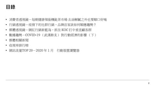 本报告分析了疫情下的消费者行为和市场动态,特别是在功能性茶饮市场和社交媒体营销领域。随着健康饮食趋势的上升,功能茶饮品牌面临激烈竞争,消费者对于口感和功效的关注也日益增加。同时,社交媒体成为品牌与消费者互动的重要平台,KOC(关键意见消费者)的营销模式逐渐受到重视,显示了对市场的深远影响。