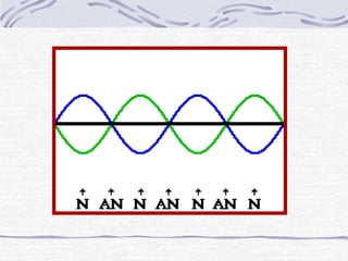 Waves are disturbances that transfer energy through a medium. They are caused by vibrations in the medium and can be transverse, longitudinal, or a combination. Key properties of waves include amplitude, wavelength, frequency, and speed. Waves interact with each other and surfaces through reflection, refraction, diffraction, interference, and can form standing waves through the combination of incoming and reflected waves.