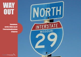 Centocinquanta offre supporto alle aziende per l'internazionalizzazione, in particolare nei mercati del Nord Africa e degli Stati Uniti, fornendo assistenza in tutte le fasi del commercio estero. Grazie a un rete internazionale di consulenti, l'azienda aiuta nella pianificazione strategica, nella ricerca di partner commerciali, e nello sviluppo di reti locali per una comoda espansione oltre confine. Inoltre, fornisce servizi legali e amministrativi, consulenza fiscale e supporto nelle operazioni quotidiane per garantire il successo nel mercato globale.