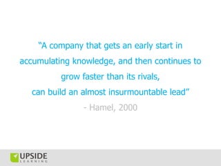 The document outlines seven ways the iPad can enhance workplace learning, emphasizing its role in providing versatile tools for communication and learning. Key features of the iPad, such as its 9.7-inch screen, multimedia capabilities, and robust processor, make it suitable for e-books, presentations, games, simulations, and video libraries. It also highlights the potential for creating collaborative environments and teaching psychomotor skills effectively.