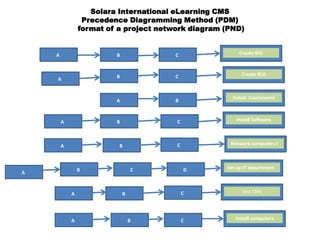 The project aims to develop an online eLearning course management system (CMS) to deliver Solara International's solar photovoltaic design and installation courses online. Key tasks include creating course modules and content, installing necessary software and hardware infrastructure, and testing the new CMS. The project aims to address the growing demand for Solara's courses and allow more students to access the training remotely. Risks include potential technology issues, requiring new servers and hardware, and ensuring instructors are comfortable teaching online. The project will be deemed successful if an engaging online course is launched that prepares learners for careers in solar energy and allows for both online and hands-on learning.