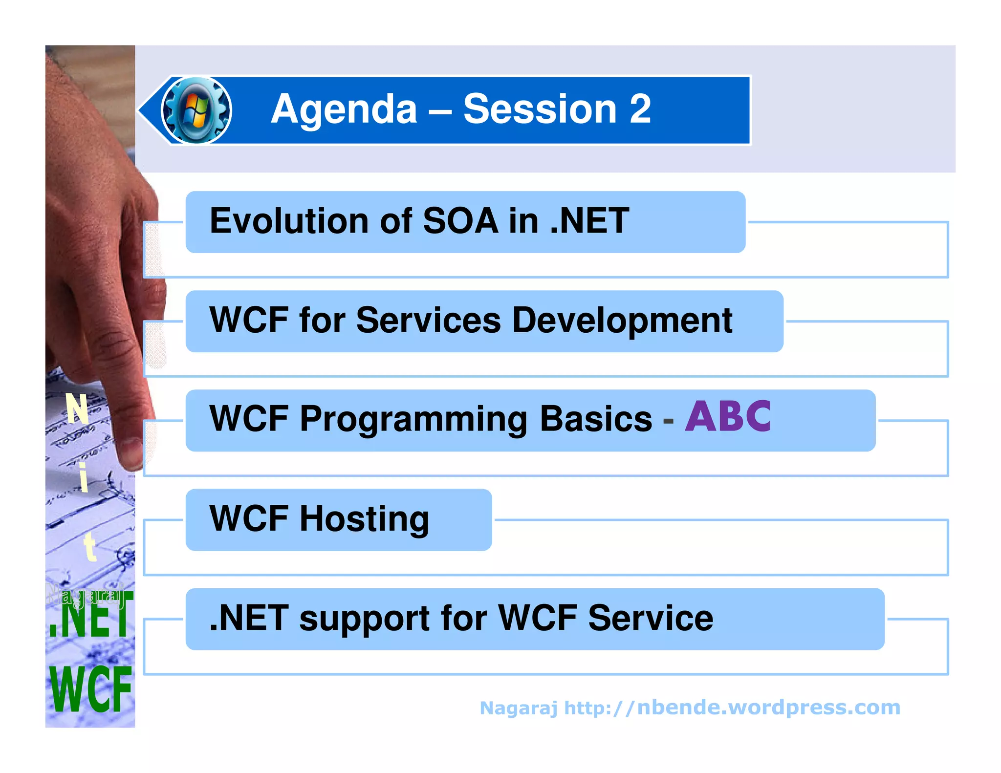 This document discusses the evolution of services in .NET from ASMX to WCF. It provides an overview of key WCF concepts including the WCF end point, address, binding, and contract. The end point defines where the service resides on the network. The address specifies the network location. The binding defines the communication options like transport and encoding. The contract specifies what the service communicates by defining operations, message patterns, and behaviors.