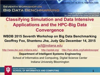 The document details the classification of simulation and data-intensive applications, particularly focusing on the convergence of high-performance computing (HPC) and big data. It discusses various use cases across government, commercial, defense, healthcare, and more, highlighting specific applications and their technical requirements. The paper also defines key features and patterns related to big data and simulation, emphasizing methodologies for analyzing complex data in high-performance environments.