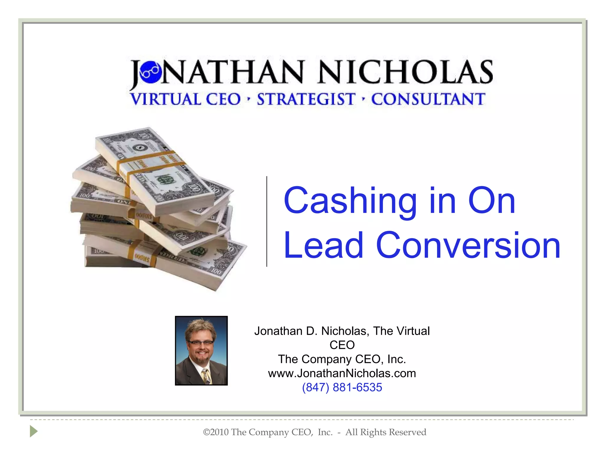 The document discusses the importance of effective lead conversion strategies for real estate agents, emphasizing the need for immediate and continuous follow-up, providing value to potential clients, and utilizing technology for efficient communication. It highlights the disconnect between the increasing number of internet-savvy buyers and agents, who often neglect online leads and fail to nurture them effectively. Key strategies include responding promptly, automating follow-ups, and delivering valuable content to engage leads throughout their home-buying journey.