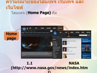เว็บเพจ (Web Page)คือหน้าหนึ่งๆ ของเว็บไซต์ที่เปิดขึ้นมาใช้งาน โดยเว็บเพจ ส่วนใหญ่จะอยู่ในรูปแบบของเอกสาร HTML หรือ XHTML โดยมี link เชื่อมโยงไปยังหน้าเว็บเพจอื่นๆ Link ที่เชื่อมโยงไปยังหน้าเว็บเพจอื่นๆ ของเว็บไซต์หน้า Web page ที่มี link เชื่อมโยงไปยังหน้าเว็บเพจอื่นๆ ของเว็บไซต์รูปที่1.2 หน้าเพจเว็บของ Song chai's BLOG (http://www.songchaiblog.com/397)