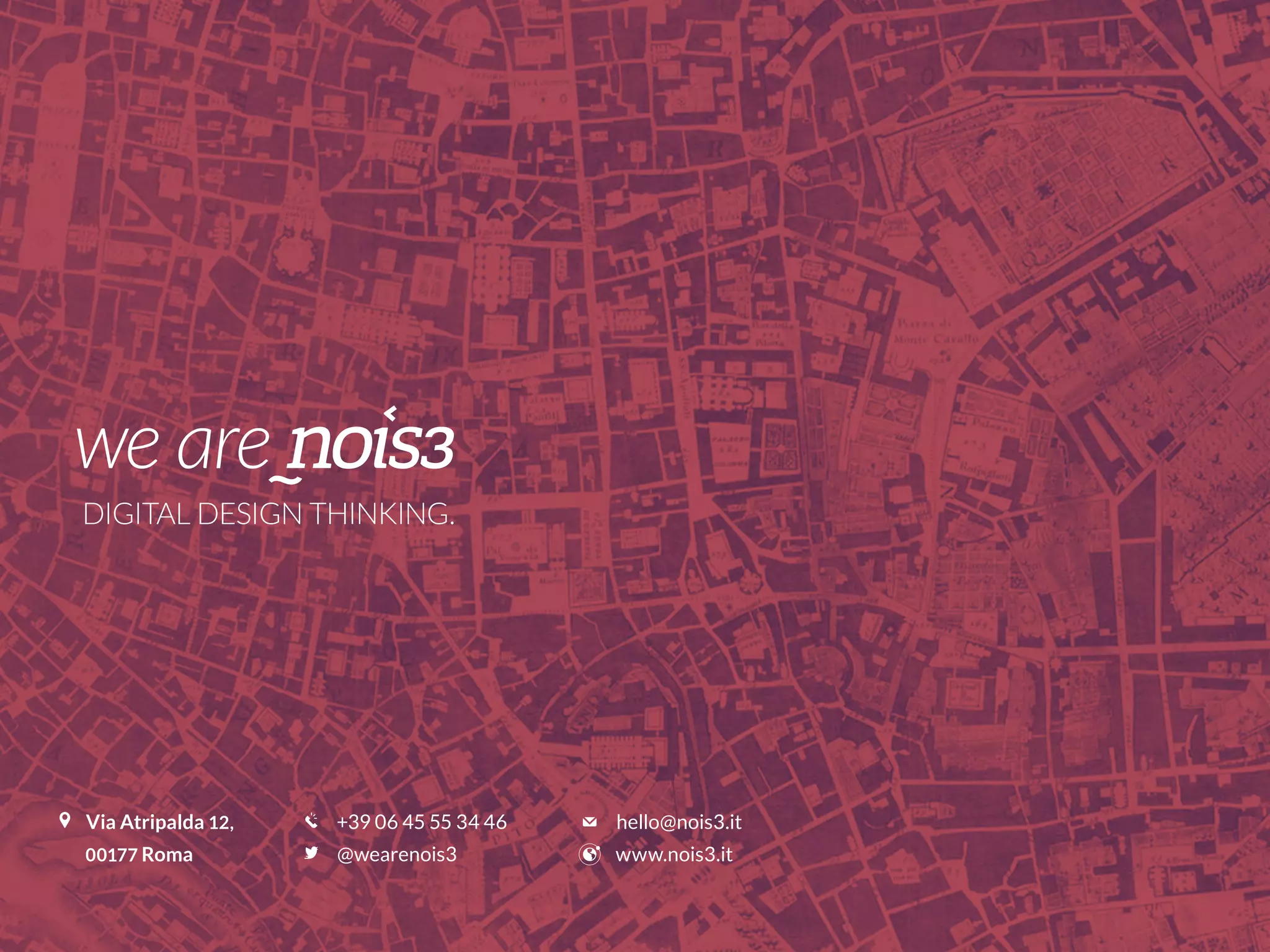 Nois3 is a creative web agency based in Rome, Italy that designs responsive websites and digital strategies. They focus on understanding customer needs and continuous delivery of valuable software. Nois3's services include brand identity and strategy, experience design, front-end development, event management, and training. They provide examples of websites and apps they developed for various clients.