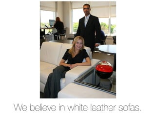 The document expresses a belief in the importance of thoughtful interior design and aesthetics, particularly emphasizing white leather sofas and natural light. It advocates for a comfortable work environment that promotes pride and daily business casual attire. Additionally, it highlights the value of small touches like fresh flowers for special occasions.