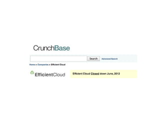 - Efficient Cloud launched in 2010 but failed to gain any customers or revenue, despite having a team of developers, sales, and marketing staff.