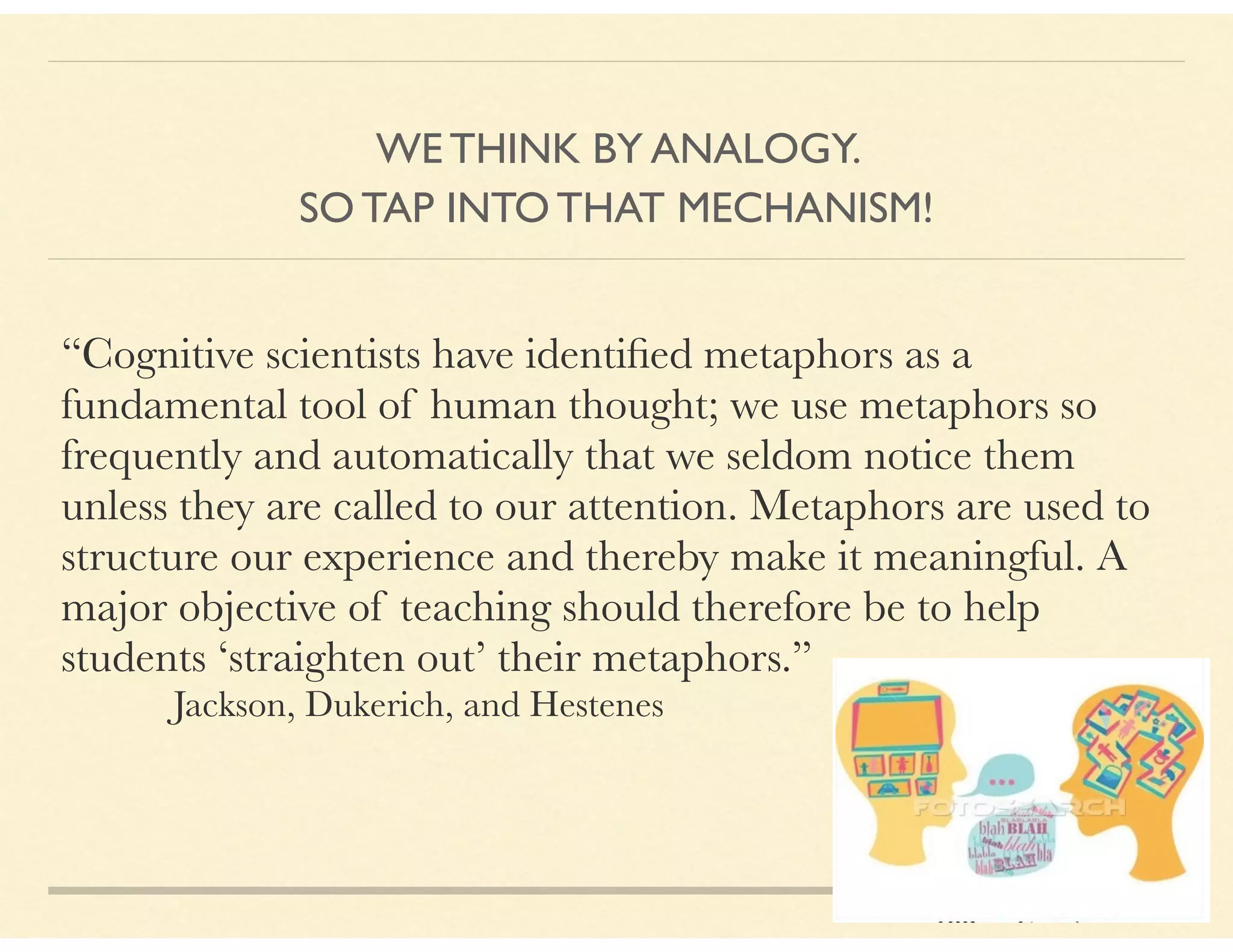 The document emphasizes the importance of using analogies and metaphors in teaching to enhance student understanding and retention by allowing them to map new concepts onto existing knowledge. It outlines a structured approach for educators to facilitate students in creating their own analogies through research, diagramming, and consensus-building. Ultimately, the goal is to improve learning outcomes by encouraging students to engage deeply with content rather than merely memorizing information.