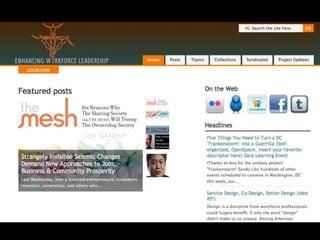 This document discusses leadership and economic challenges facing a fictional town called Sixtown. It provides an exploration of leadership approaches and superpowers, including adopting a wide view, building diverse networks, embracing openness, encouraging experimentation, adding unique value, and cultivating next generation leaders. Participants in a leadership deep dive session will discuss what leadership practices have worked in similar situations, important actions specific leaders in Sixtown could take to move the town forward, and the tools or skills needed for those actions. The goal is to help address Sixtown's problems of lack of access to economic opportunity and promising solutions not scaling.