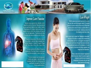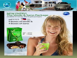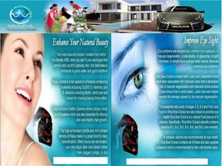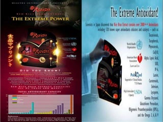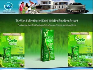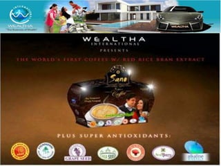 Wealtha, a leading internet marketing company since 2009, offers health products like their Verde super green juice and Raisu, a red rice bran extract known for its high antioxidant content and health benefits. The company provides various earning opportunities through direct selling, referrals, and product sales, with potential profits detailed for different incentive structures. Wealtha emphasizes the scientific backing of its products, including endorsements from experts on the health benefits of antioxidants.