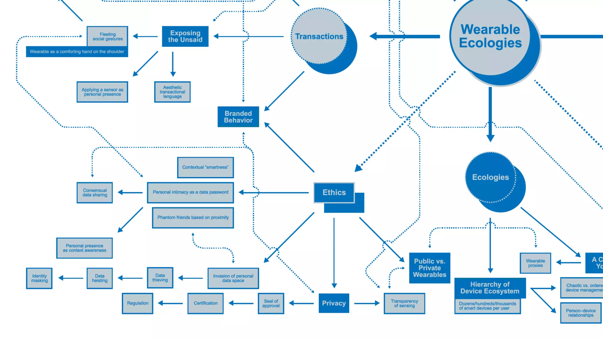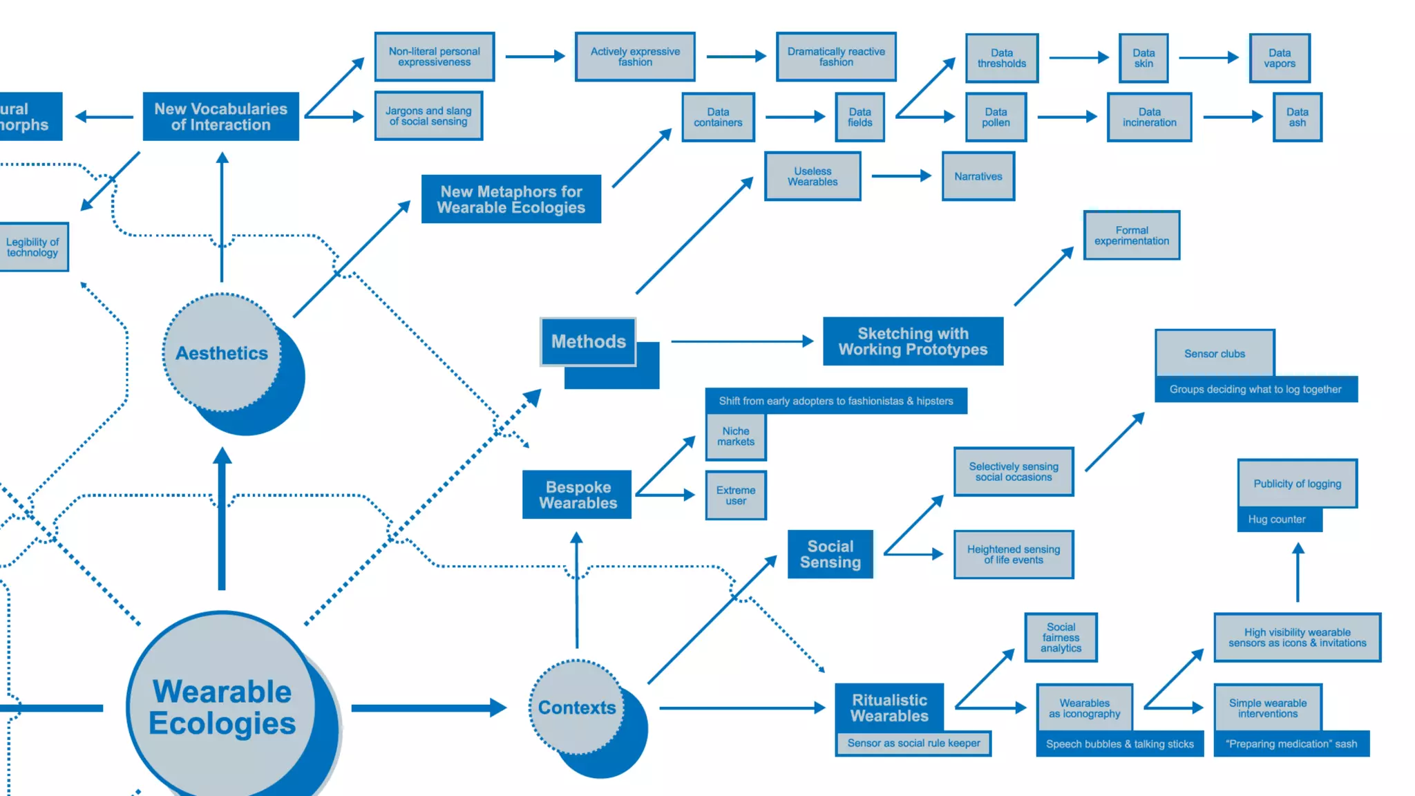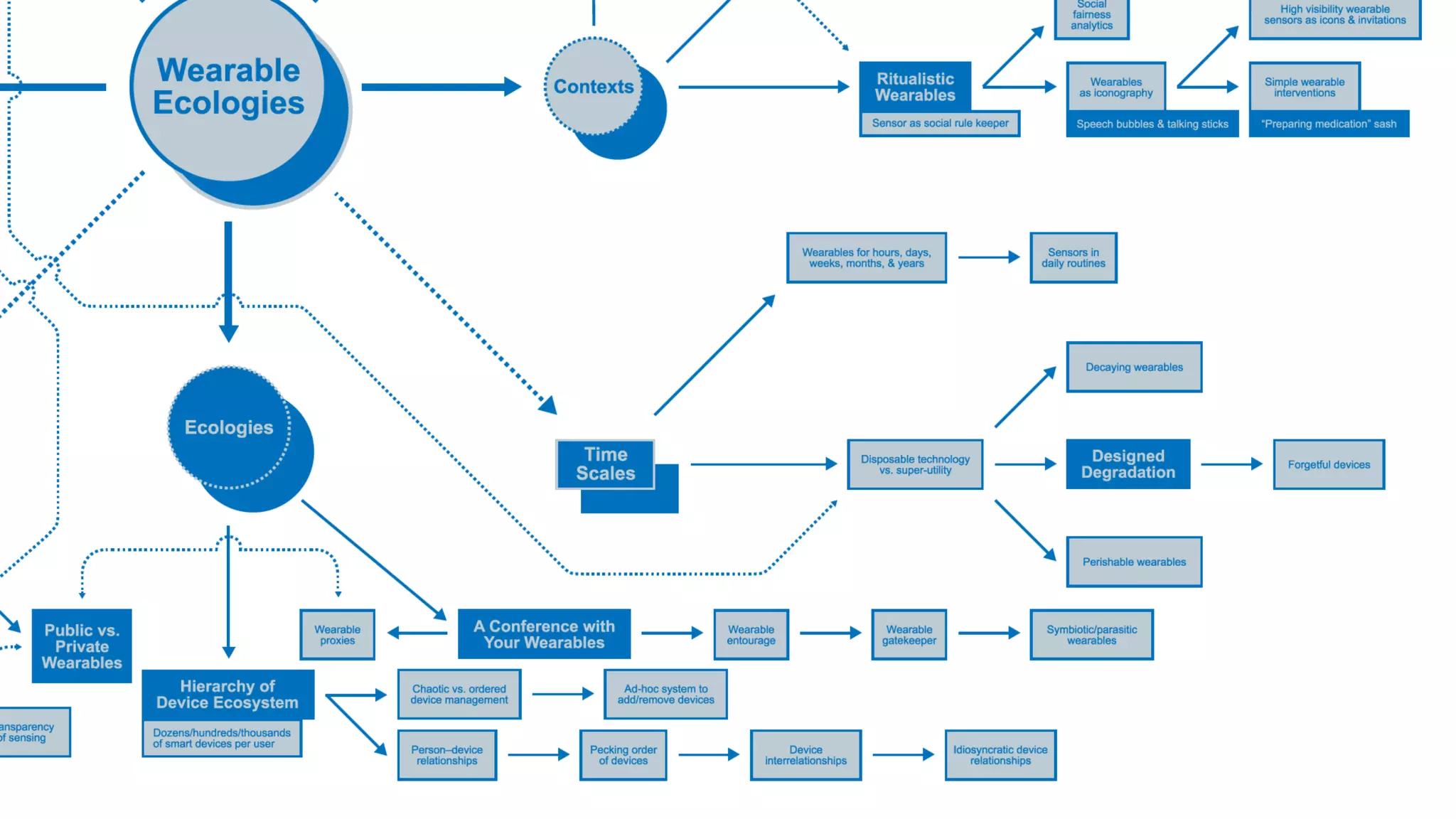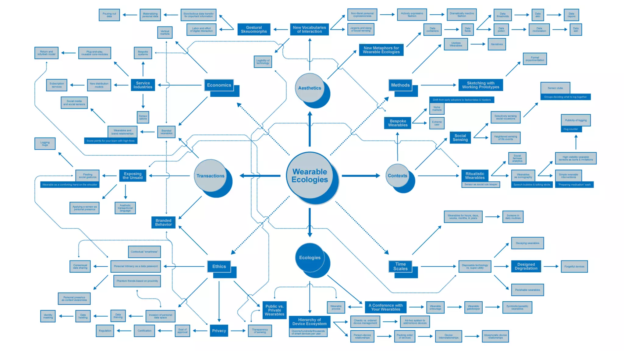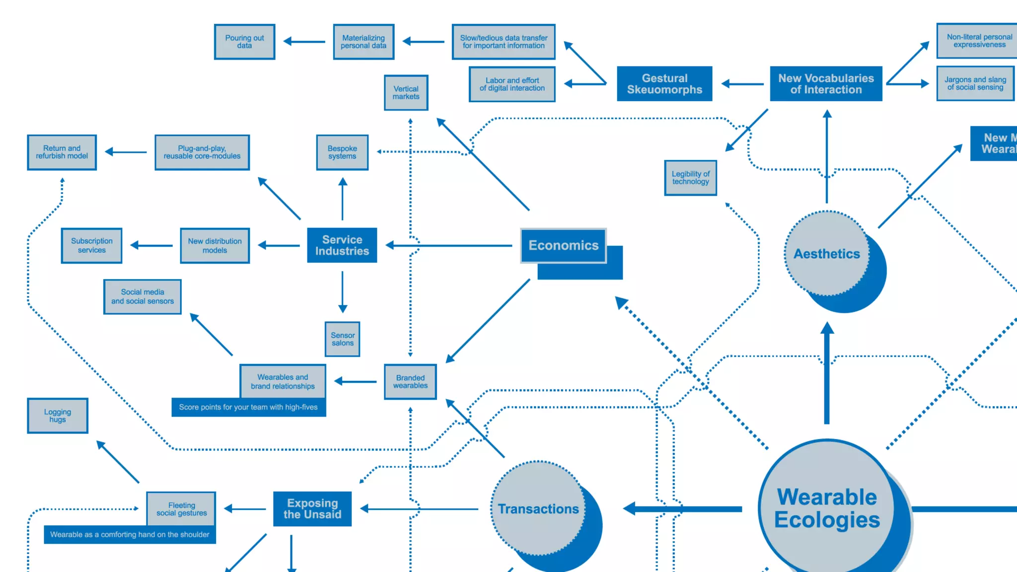 The document outlines the 2014 Wearable Ecologies project, a collaborative inquiry by the Media Design Practices Lab at the Art Center College of Design, in partnership with Intel. It highlights various intensive projects exploring the potential of wearables within cultural, technological, and ethical contexts, culminating in a symposium featuring panels and student project demonstrations. Key discussions included the socio-cultural implications of wearables, transactional narratives, and the aesthetics of wearable design.
