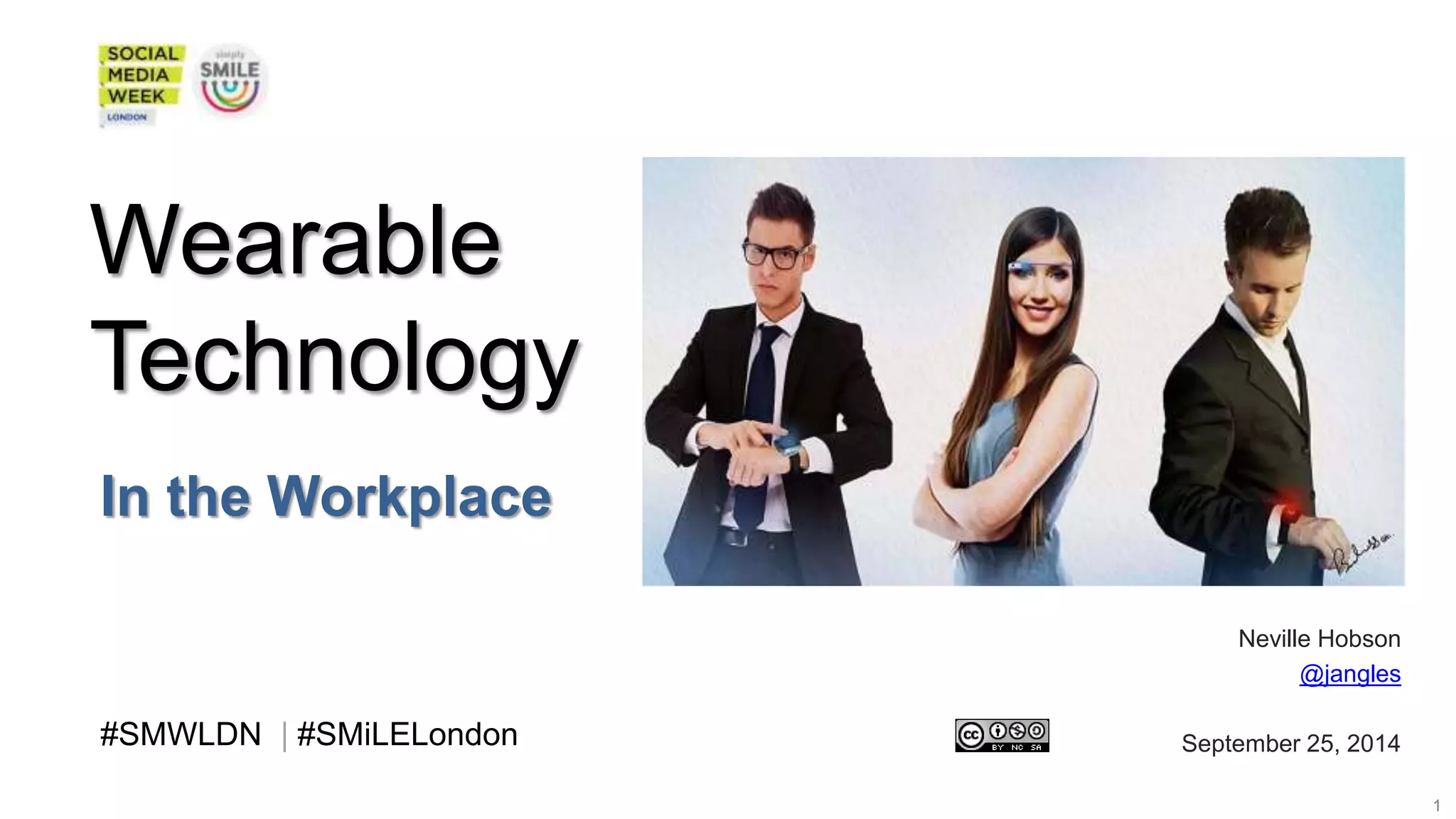 This document discusses the potential for wearable technology in the workplace. It explores how transparent wearable technology is within enterprises and defines wearable technology. Opinions on wearable technology are provided from various surveys and articles, finding benefits but also concerns about privacy and inequality. Examples are given of possible future applications of wearable technology in the workplace like sharing profiles during meetings and notifications through smart watches or glasses. The document raises questions around how compliant organizations have become with wearable technology and what capabilities exist today in the workplace.