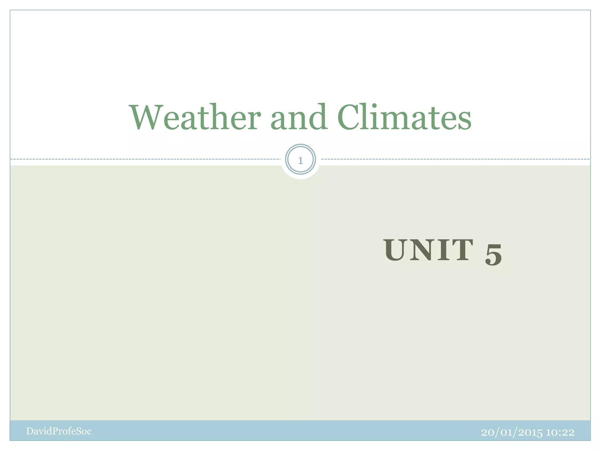 This document discusses the key components of weather and climate. It describes the atmosphere as being made up of four layers - the troposphere, stratosphere, mesosphere, and thermosphere. The ozone layer, located in the stratosphere, protects the Earth from harmful ultraviolet radiation. Temperature varies based on factors like latitude, altitude, and distance from bodies of water. Humidity and precipitation are also influenced by temperature, with water vapor condensing into clouds and precipitating as rain, snow, or hail. Atmospheric pressure changes with temperature and altitude, and wind is caused by differences in air pressure.