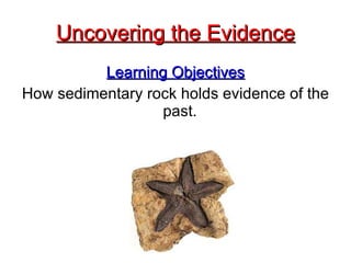 Fossils are the preserved remains or traces of animals and plants buried in the ground thousands of years ago. They form when plant and animal remains are buried under sediment and the organic material is replaced with minerals from water. Fossils provide evidence that allows scientists to understand prehistoric plant and animal life by showing what organisms existed in the past and how they evolved over time.
