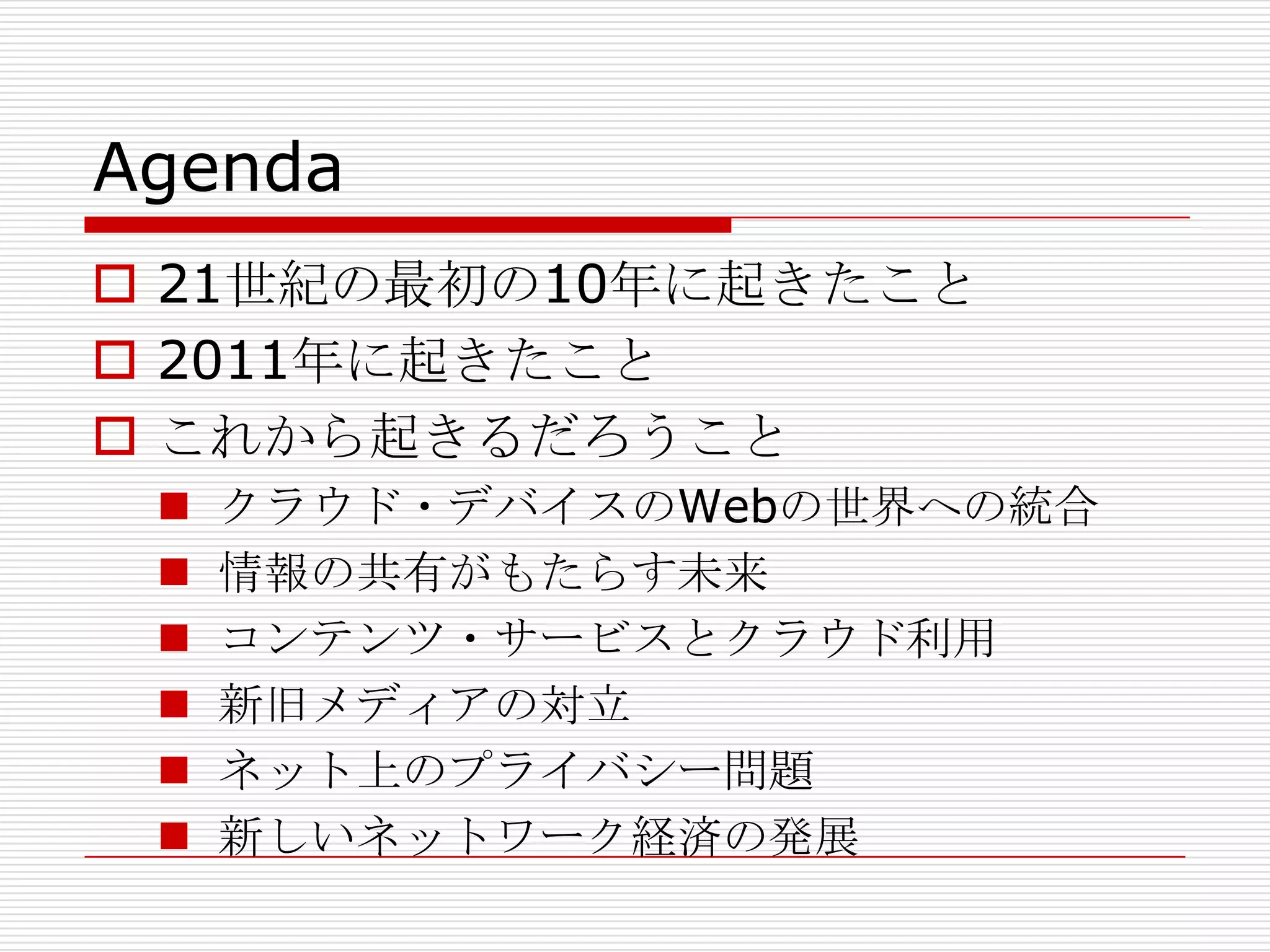 「変貌するWebの世界 -- クラウドとクラウド・デバイスのインパクト」 1. 2. 3. 4. 5. 9. 2007年-2011年