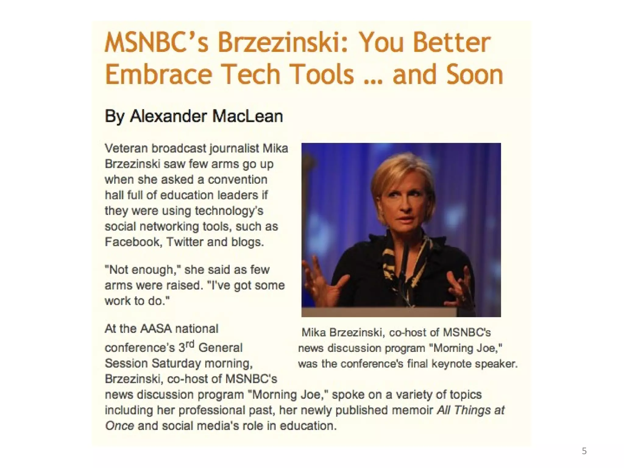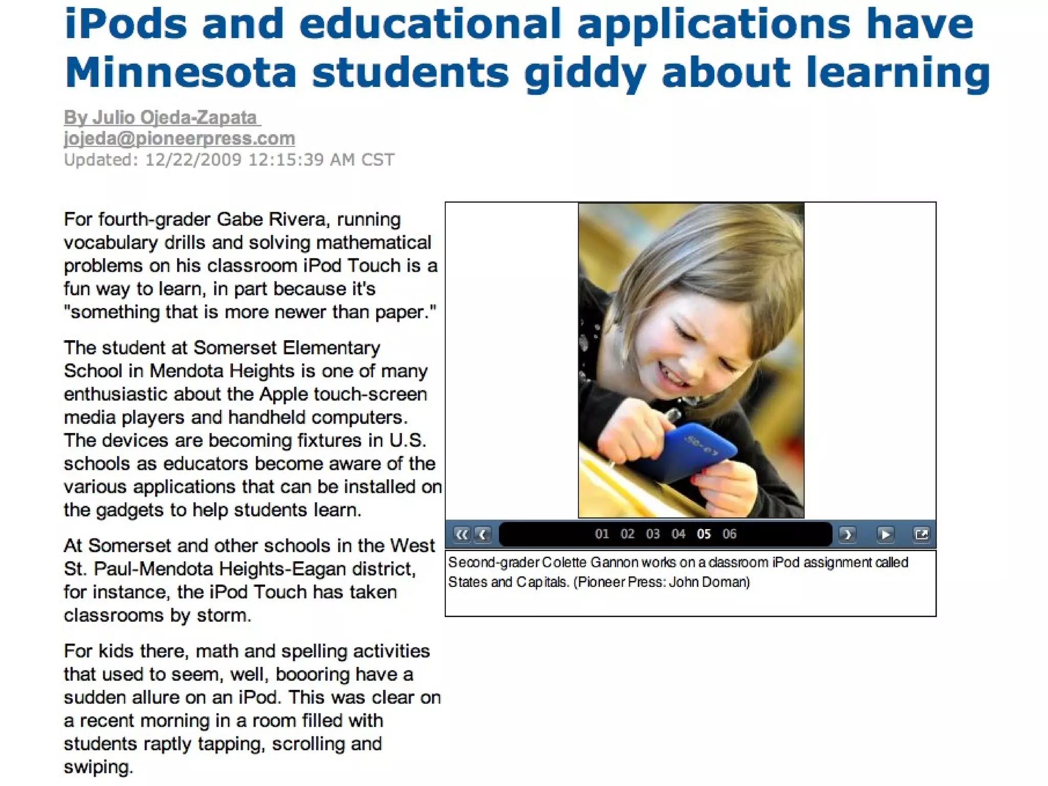 The document discusses using technology tools like Google Docs, Jing, podcasting, and social media to increase engagement, collaboration, and learning for students and teachers. It provides examples of how administrators can use screencasting, video, and audio podcasts to communicate with stakeholders. Interactive whiteboards, netbooks, and e-readers are presented as technologies that can enhance classroom learning when combined with effective teaching strategies.