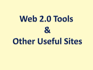 The document provides a list of over 50 websites for educational use. It includes brief descriptions of each site and the URL. The sites cover a wide range of subjects and include resources for reading, writing, math, art, science, social studies and more. Many provide lesson plans, activities, videos and other teacher supports. The document aims to explore educational websites and provide tools for teaching.