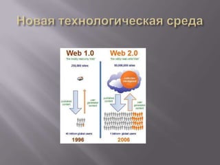 Документ рассматривает концепцию веб 2.0, определяемую Тимом О'Рейли как методику проектирования систем, улучшающихся через сетевые взаимодействия пользователей. Обсуждаются ключевые аспекты и особенности веб 2.0, такие как вовлеченность пользователей в создание контента и важность качества информации. В документе также упоминаются исторические контексты и примеры значимых компаний, которые стали пионерами в этой области.