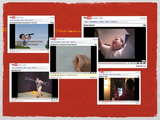 The document discusses Web 2.0 tools and participatory culture. It notes that Web 2.0 allows users to search, change, contribute and remix content as opposed to just consuming it like in Web 1.0. The document questions whether a new digital divide exists and mentions using a webinar to access ideas outside one's world. It provides examples of Web 2.0 tools like blogs, Wikipedia, social networking sites and video sharing sites. The document advocates for participatory culture where everyone believes they can contribute.