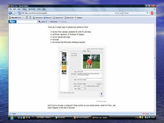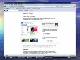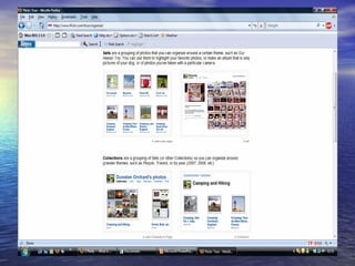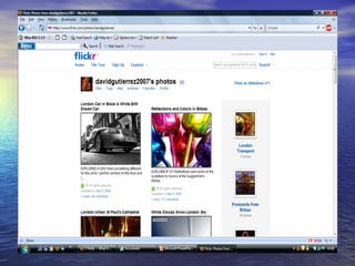 The document discusses the concept of Web 2.0, which refers to applications on the internet rather than the internet itself. It emerged from a brainstorming session between O'Reilly and MediaLive International. Web 2.0 allows for different services to be combined into applications or "mashups" and makes authoring web content less technically demanding. Examples provided include Flickr replacing Ofoto and Wikipedia replacing Britannica Online. The document also covers topics such as RSS, wikis, widgets, social networking sites, and concerns around security, identity and privacy with Web 2.0.