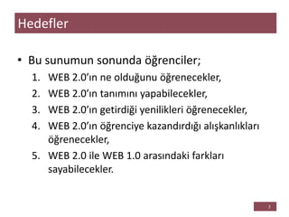 1. WEB 2.0’ın ne olduğunu öğrenecekler,