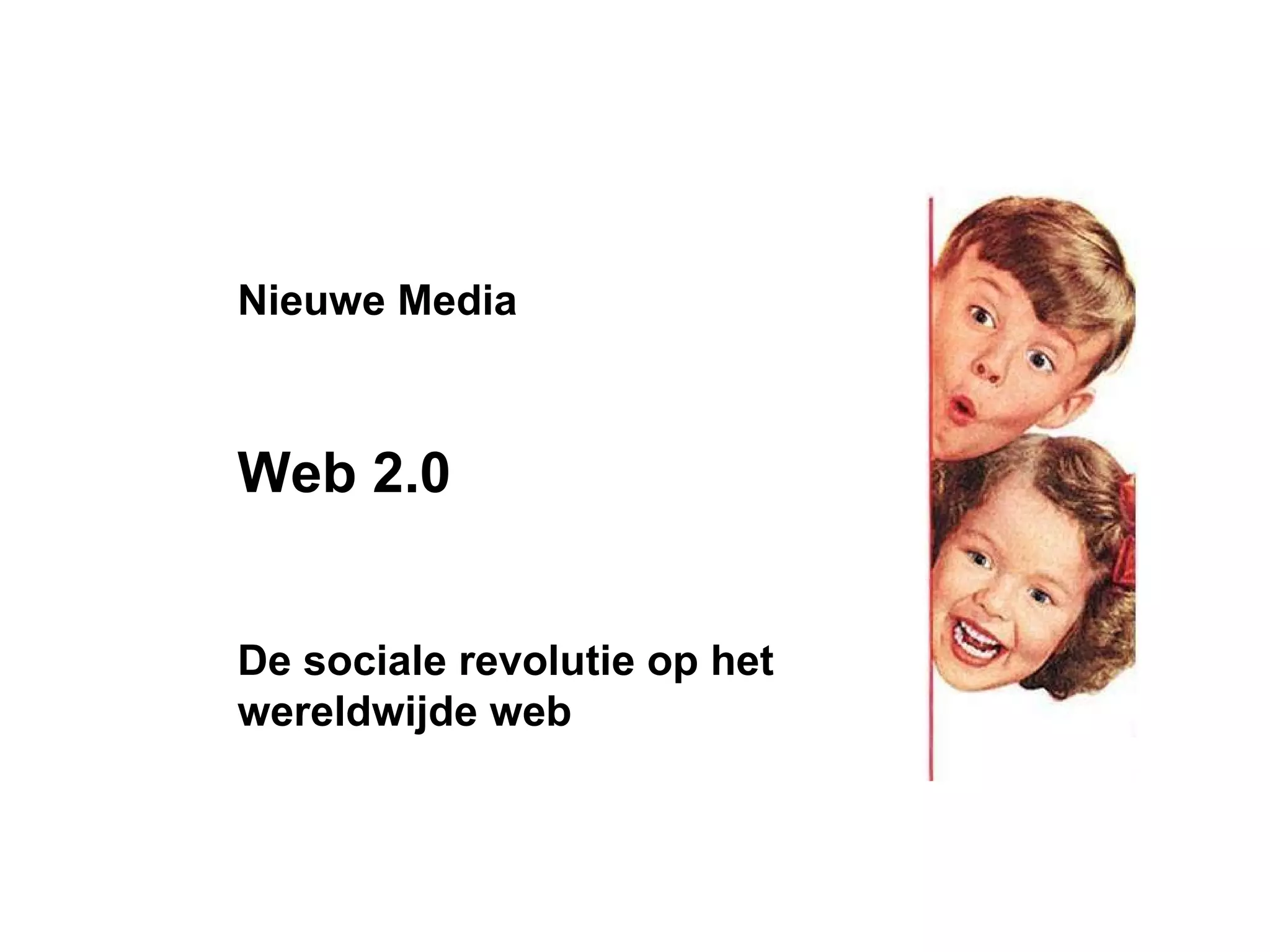 Wat is Web2.0 ? Een verzamelnaam voor de opkomst van allerlei technieken die het web “socialer” maken Met deze technieken wordt het delen van informatie gemakkelijker en wordt deze toegankelijker, los van aparte websites. Eerste fase : commercieel internet vanaf midden jaren 90 tot uiteenspatten “internetzeepbel” in 2001 Tweede fase : Web 2.0