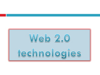 The document discusses the evolution of the web from Web 1.0 to Web 2.0. It defines Web 2.0 based on O'Reilly's definition as a business revolution caused by the move to the internet as a platform. It outlines some key differences between Web 1.0 and 2.0 technologies, including static vs. dynamic/user-generated content. The document also lists several common design patterns of Web 2.0 sites like collaborative tagging, synchronized web, and social networking that emphasize participation and sharing over proprietary platforms.