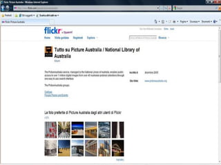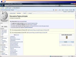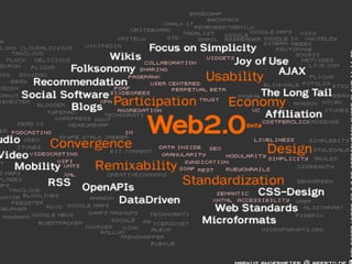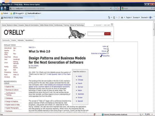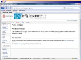 Il documento discute l'evoluzione del Web 2.0 e il suo impatto sulla società e le biblioteche, evidenziando la transizione verso piattaforme collaborative e contenuti generati dagli utenti. Vengono descritti diversi strumenti e tecnologie associati al Web 2.0, come blog, social network e wiki, che hanno facilitato la condivisione e l'interazione tra gli utenti. Infine, si analizza come queste innovazioni abbiano cambiato le modalità di accesso alle informazioni e la comunicazione nelle biblioteche, promuovendo un'intelligenza collettiva.