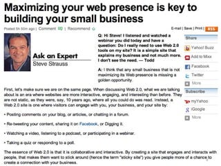 The document discusses the impact of Web 2.0 technologies on education, highlighting the importance of equipping students with necessary digital skills and engaging them through modern tools. It includes statistics on social media usage, technology integration in classrooms, and emphasizes the need for educators to adapt their teaching methods to better prepare students for the 21st-century workforce. Additionally, it outlines various technological trends and classroom applications that facilitate collaborative and personalized learning experiences.