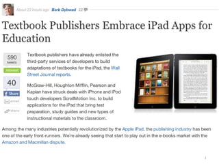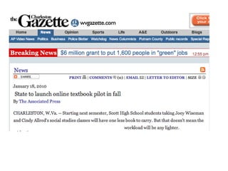 The document summarizes key points from a presentation on using Web 2.0 tools in education. It discusses how the town of Mooresville, NC successfully implemented a 1:1 laptop program. It also provides examples of various Web 2.0 tools that can be used in the classroom, such as blogs, wikis, Google Docs, and social networking, to engage students and enable collaboration. The presentation argues that technology can help close the digital divide and prepare students for 21st century skills.