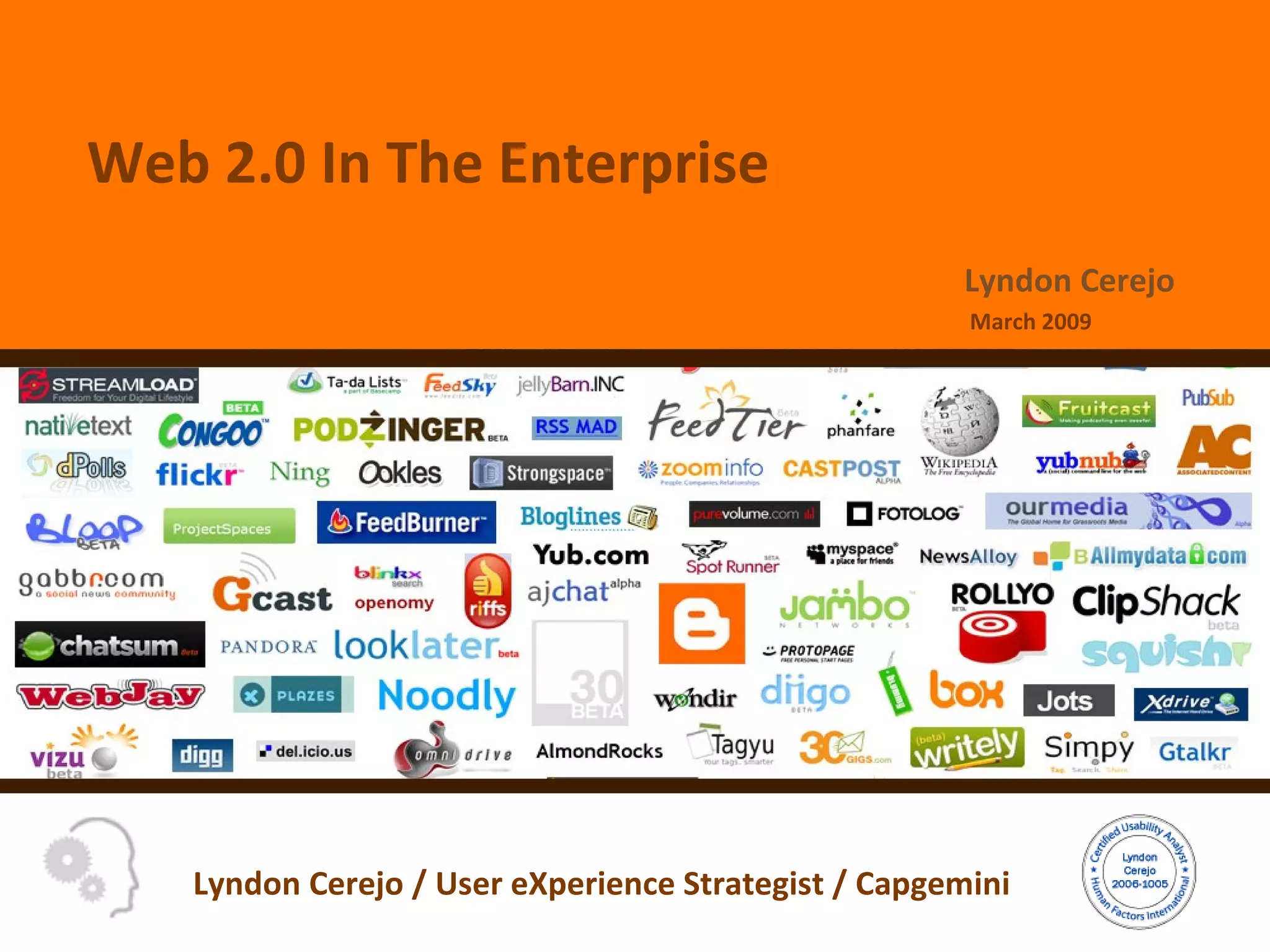 The document discusses how businesses utilize Web 2.0 technologies, referred to as Enterprise 2.0, to enhance customer engagement, internal operations, and supplier relationships. It outlines various tools and platforms, such as wikis, social networks, and mashups, that facilitate collaboration and knowledge sharing among employees. A case study illustrates how these technologies assist an employee, Michael, in onboarding and collaborating effectively within his new organization.