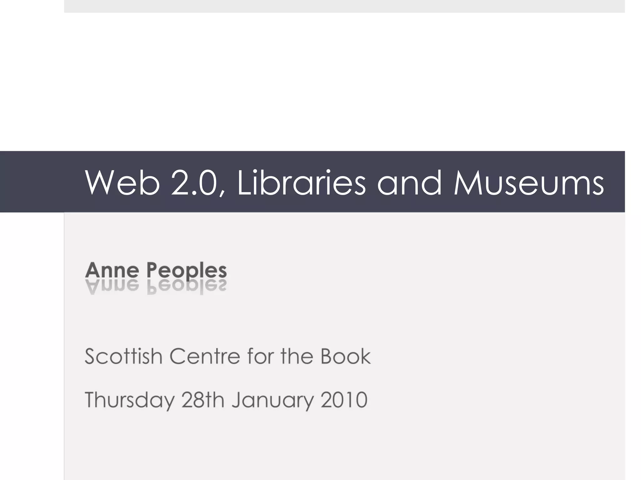 1. The document discusses how libraries and museums are using various Web 2.0 tools like blogs, social media, wikis, and content sharing platforms to engage with users and share information.