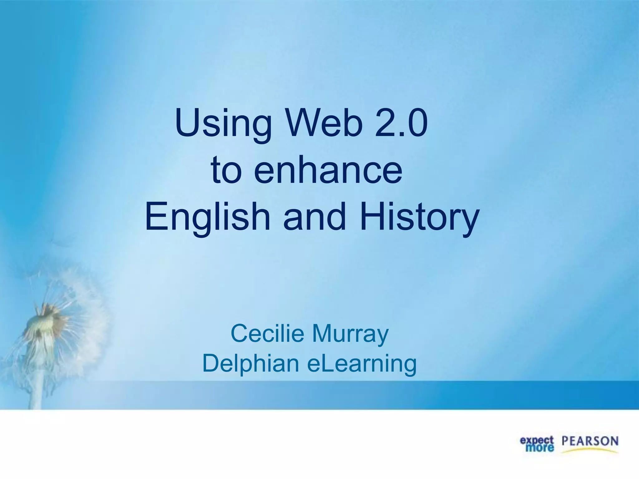 This document discusses how Web 2.0 tools can be used to enhance learning in English and History. It begins by defining Web 2.0 and some common tools like blogs, wikis, podcasts, and social networking sites. Examples are given of how these tools are used for business, socializing, and learning. The document then provides examples of how Australian schools are using Web 2.0 tools and outlines implications for teaching and learning, including allowing students to demonstrate learning and share work with a wider audience. It concludes by emphasizing that Web 2.0 makes education portable and easy to create and share content.
