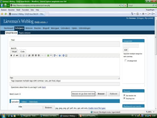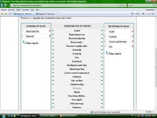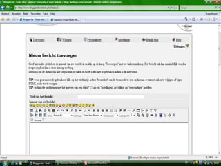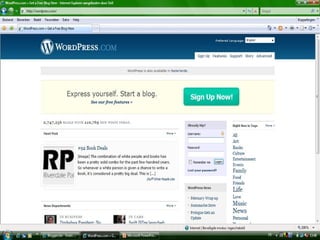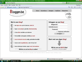 This document provides links to sign up for blogging platforms. The first link is for registering a blog on bloggen.be. The second link allows users to sign up for a WordPress blog on wordpress.com. Both links allow users to create their own blog online.
