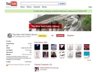 Web 2.0 refers to a second generation of web-based communities and services that encourage collaboration and sharing among users. Key aspects of Web 2.0 include social networking sites, wikis, blogs, and folksonomies. Library 2.0 applies these interactive and collaborative web technologies to library services and collections, making them more user-centered and dynamic. Examples include replacing email reference with chat reference, and augmenting controlled classification schemes with user tagging. The goals of Library 2.0 include building communities and allowing innovative changes to library services.