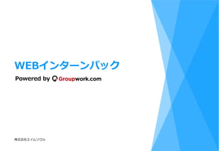 Ltd. All Rights Reserved. 双方向コミュニケーションのあるWEBインターンを実現! スライド・台本どおりの運用により、 WEB上でインターンシップを実施できます。 WEB会議システムを活用し、リモートでインターンシップができるパッケージです。 学生を集合させることなく、WEB上でインターンシップを実施できます。 WEBインターンを 丸々行える! 進行 スライド グループ ワーク資料 運営 マニュアル ※WEB会議システムはお客さまにてご準備いただきます。 ABOUT WEBインターンパックとは