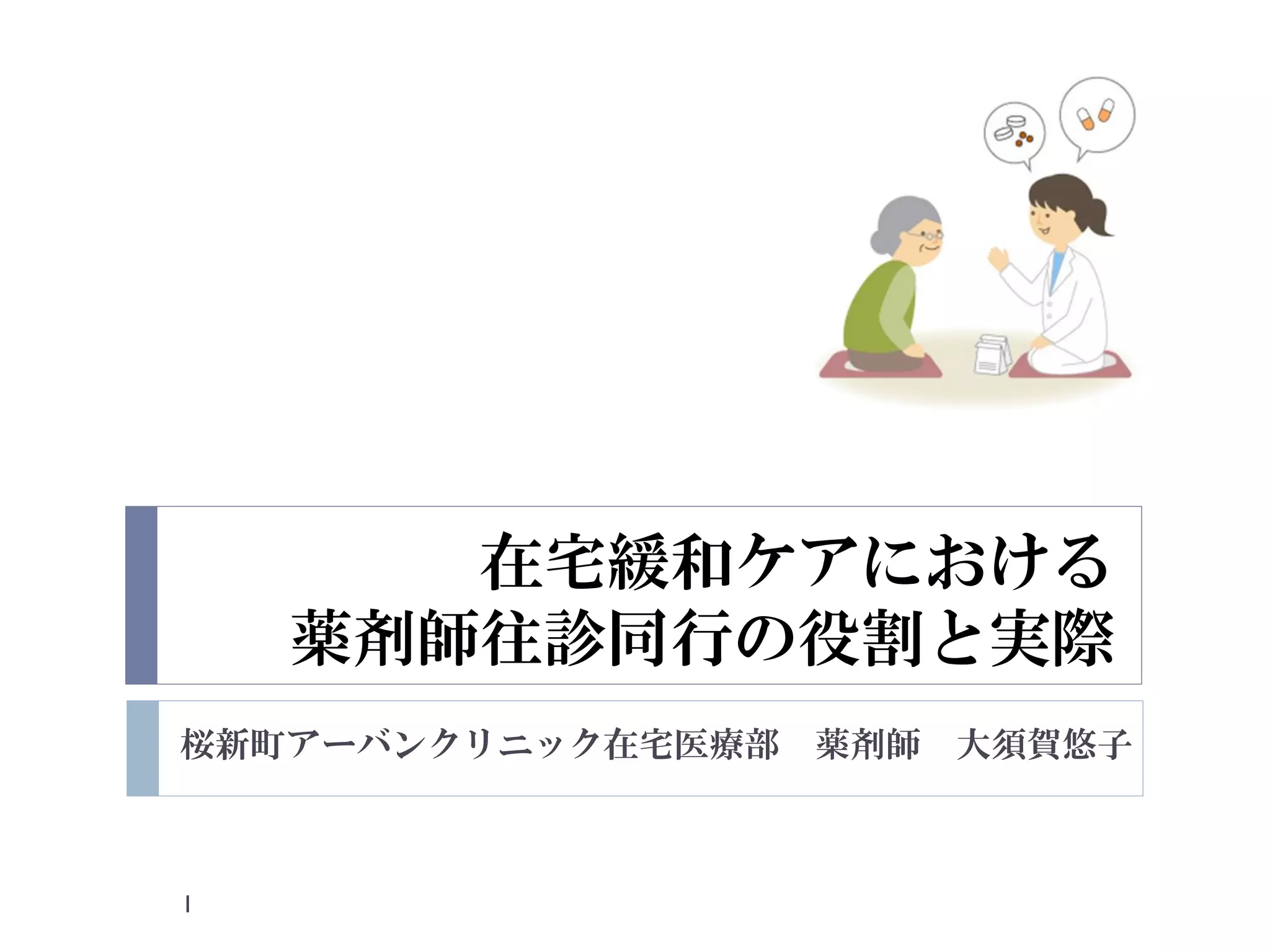 在宅緩和ケアにおける 薬剤師往診同行の役割と実際 桜新町アーバンクリニック在宅医療部 薬剤師 大須賀悠子 1
