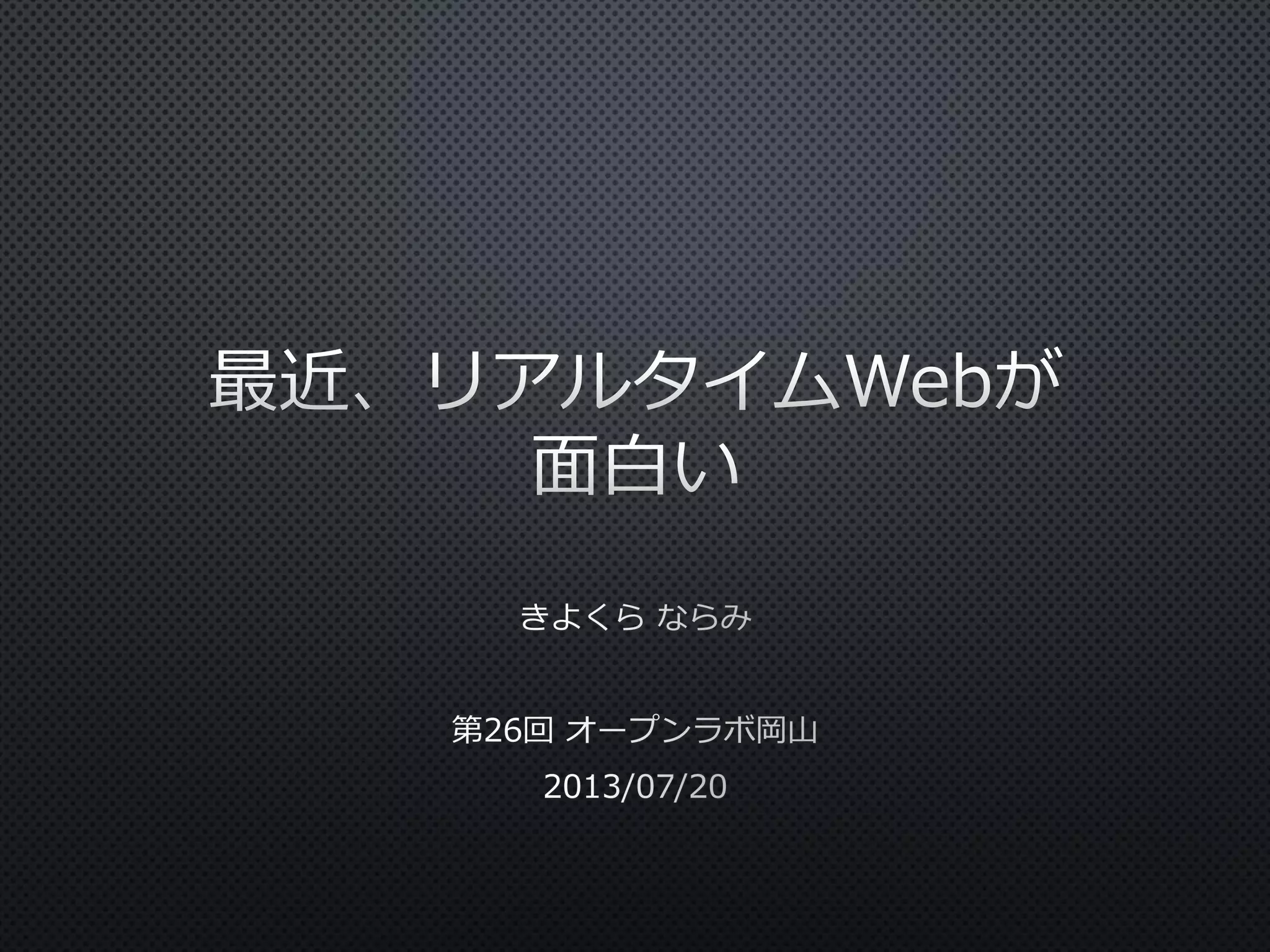2013-07-20開催の「第26回オープンラボ岡山」のセッション資料 http://local.aguuu.com/events/19055