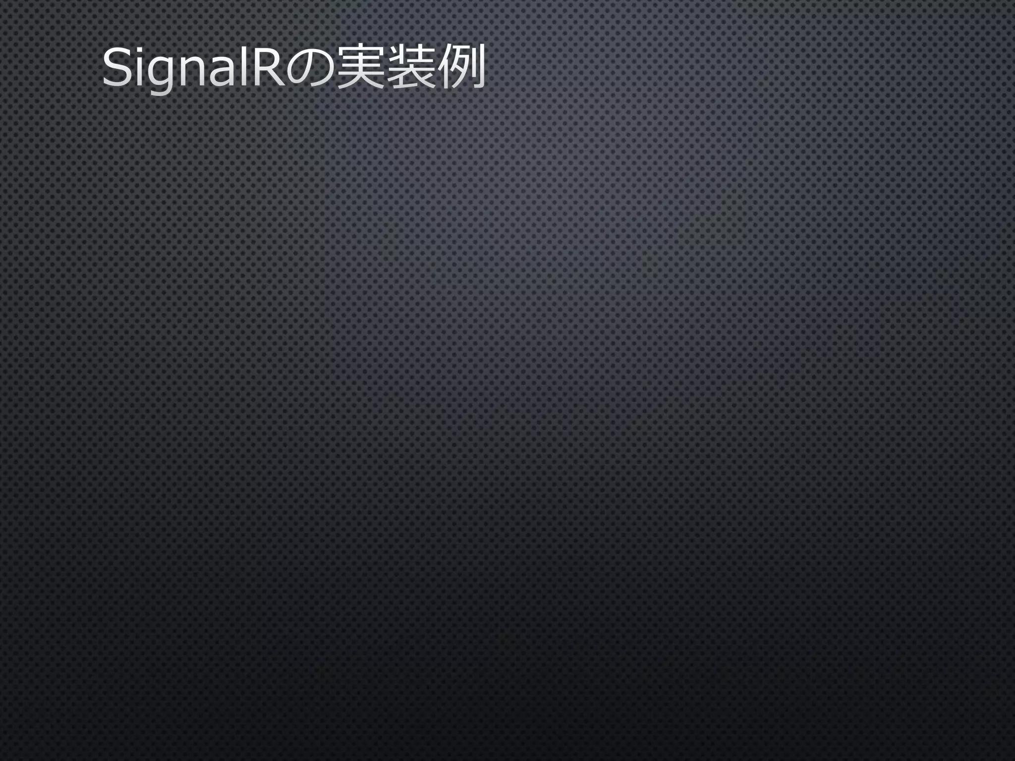 = new WebSocket('ws://hoge.server.com/ServerApp/'); // 通信が来た時の処理 ws.onmessage = function(e) { // サーバから通信が来た時の処理を書く alert(e.data); }; // データの送信(sentDataに送るデータが入ってるとして) ws.send(sentData);