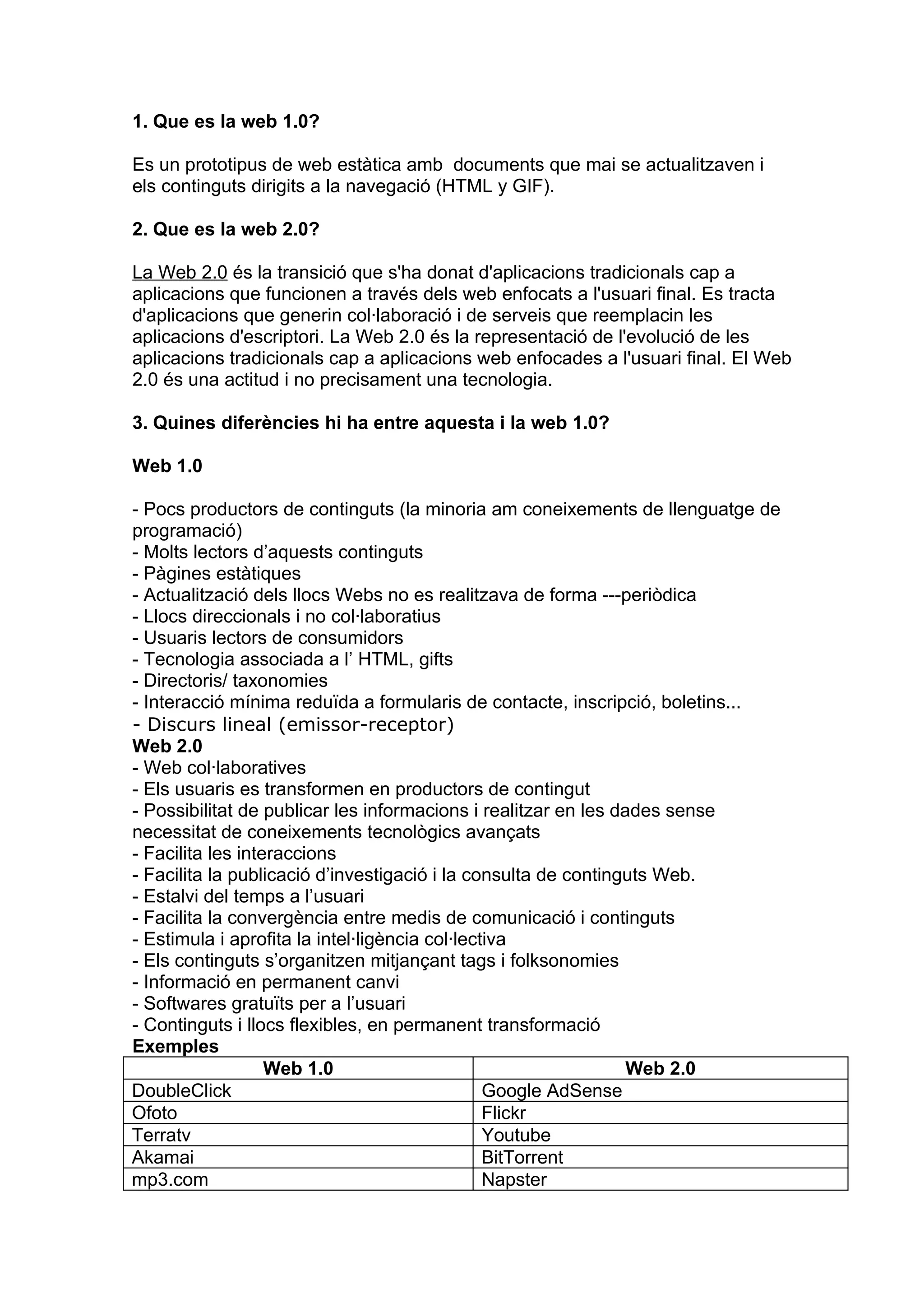 3. Quines diferències hi ha entre aquesta i la web 1.0?