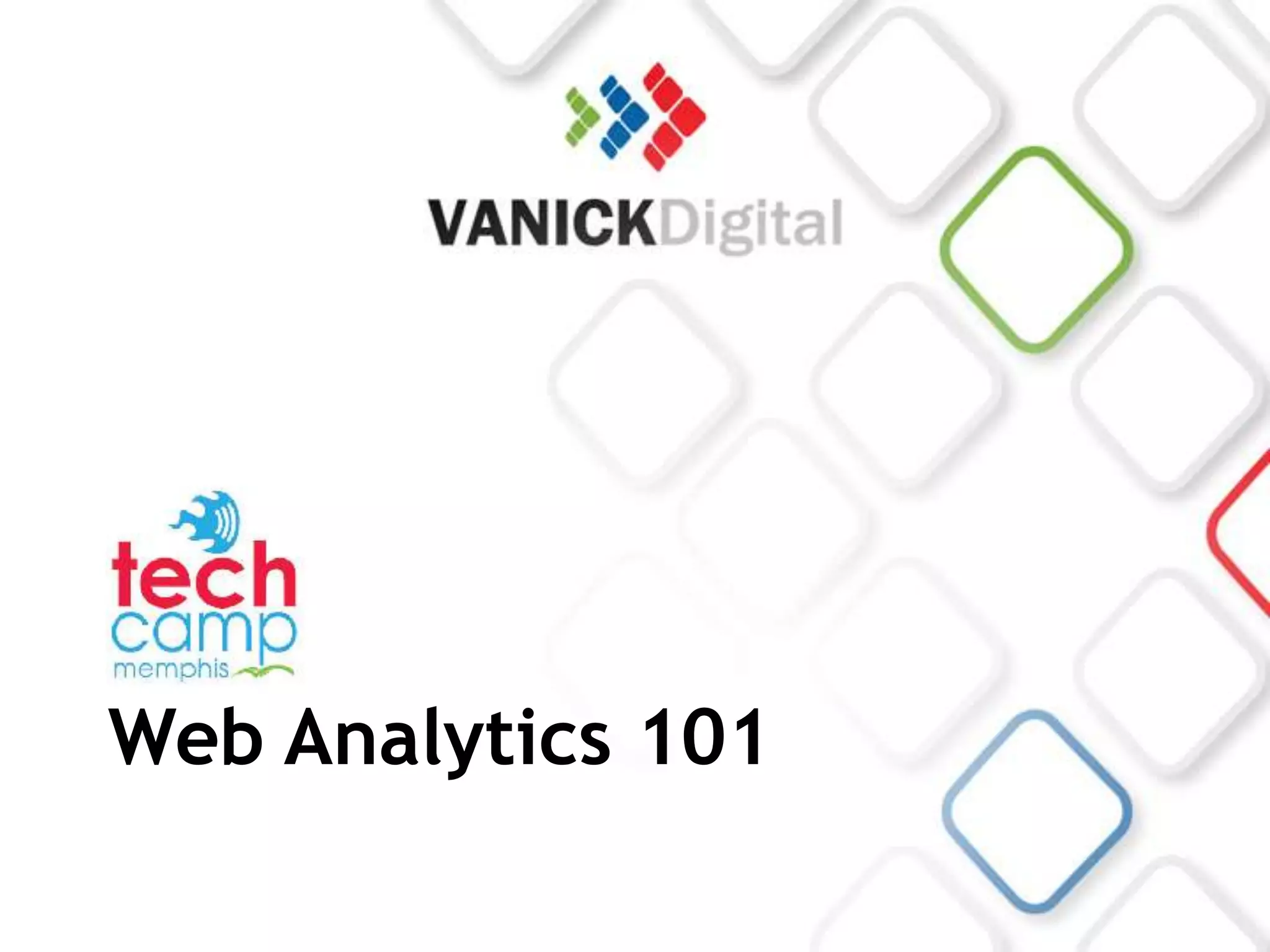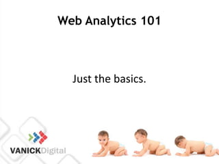 This document provides an introduction to web analytics basics. It discusses measuring traffic sources, page visits, duration on pages, page depth, and conversions. Traffic sources include organic search, paid search, paid ads, referrals, and direct traffic. Page analytics can reveal which pages are most popular and how long users spend on different pages. Tracking conversions helps determine what content and traffic sources are most effective at influencing user behavior. The document emphasizes testing hypotheses to improve analytics and better understand website audiences and goals.