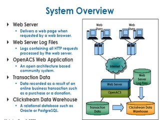 Web analytics provides insights into website visitor behavior by analyzing data from web server logs and user clickstreams. It helps understand how visitors engage with a site and which content they interact with. This informs decisions to optimize the user experience and meet business objectives. Key metrics include page views, visits, unique visitors, and visitor sessions, though these can be inaccurate without proper configuration and analysis. Web analytics requires expertise to interpret data and develop strategic insights that drive meaningful action.