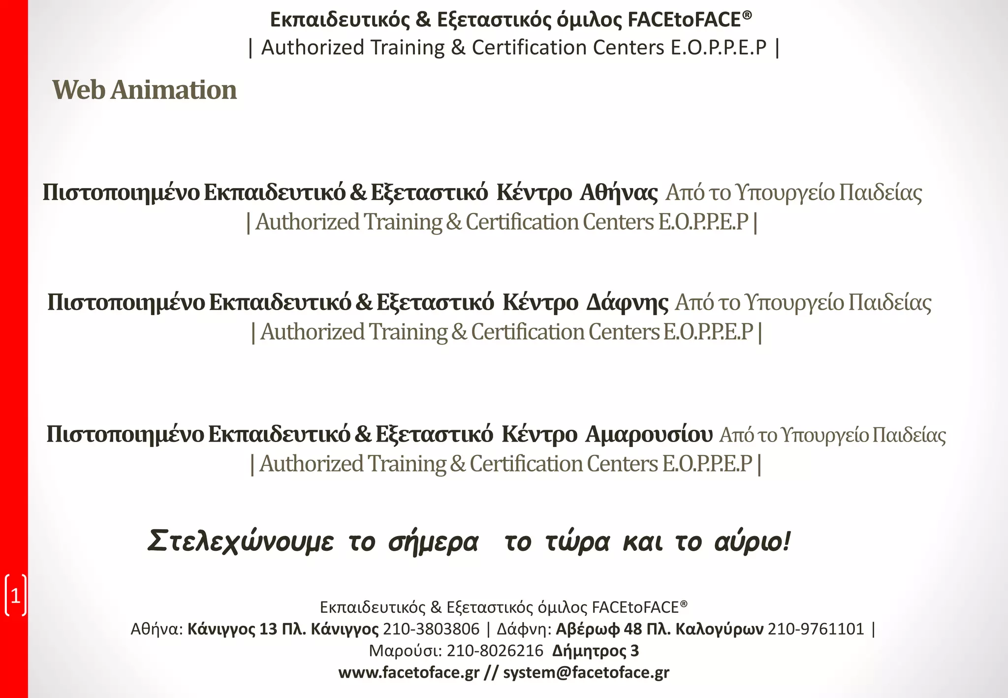 1 Εκπαιδευτικός & Εξεταστικός όμιλος FACEtoFACE®