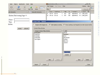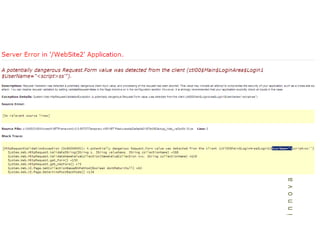 The document summarizes key points about web application security vulnerabilities and how to address them. It discusses common vulnerabilities like parameter manipulation, cross-site scripting, and SQL injection that occur due to improper validation of user input. It emphasizes the importance of validating all user input on the server-side to prevent attacks, and not storing sensitive values in cookies or hidden form fields that can be manipulated by attackers.